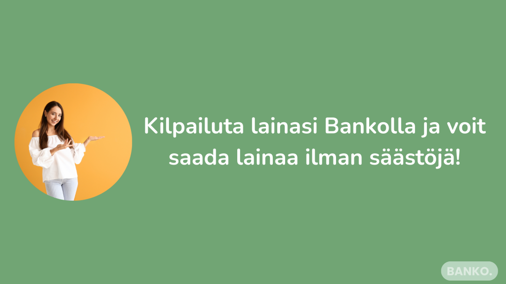 Kilpailuta maksuttomasti yli 30 pankin ja rahoituslaitoksen tarjoukset. Sen avulla voit saada lainaa ilman säästöjä alhaisella korkotasolla.